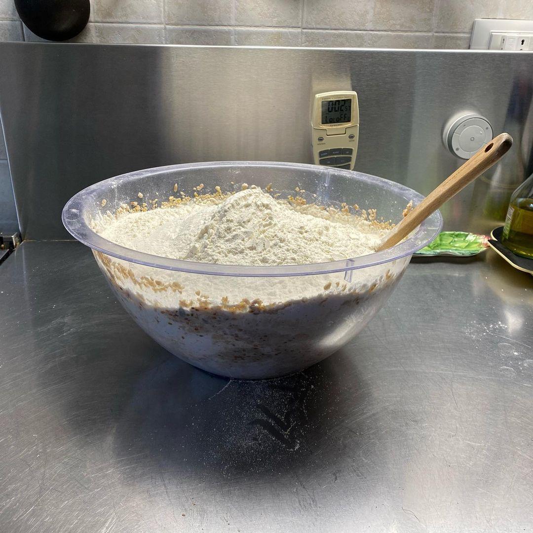 A new personal best: 6.1 kg of bread dough, all to be worked by hand.