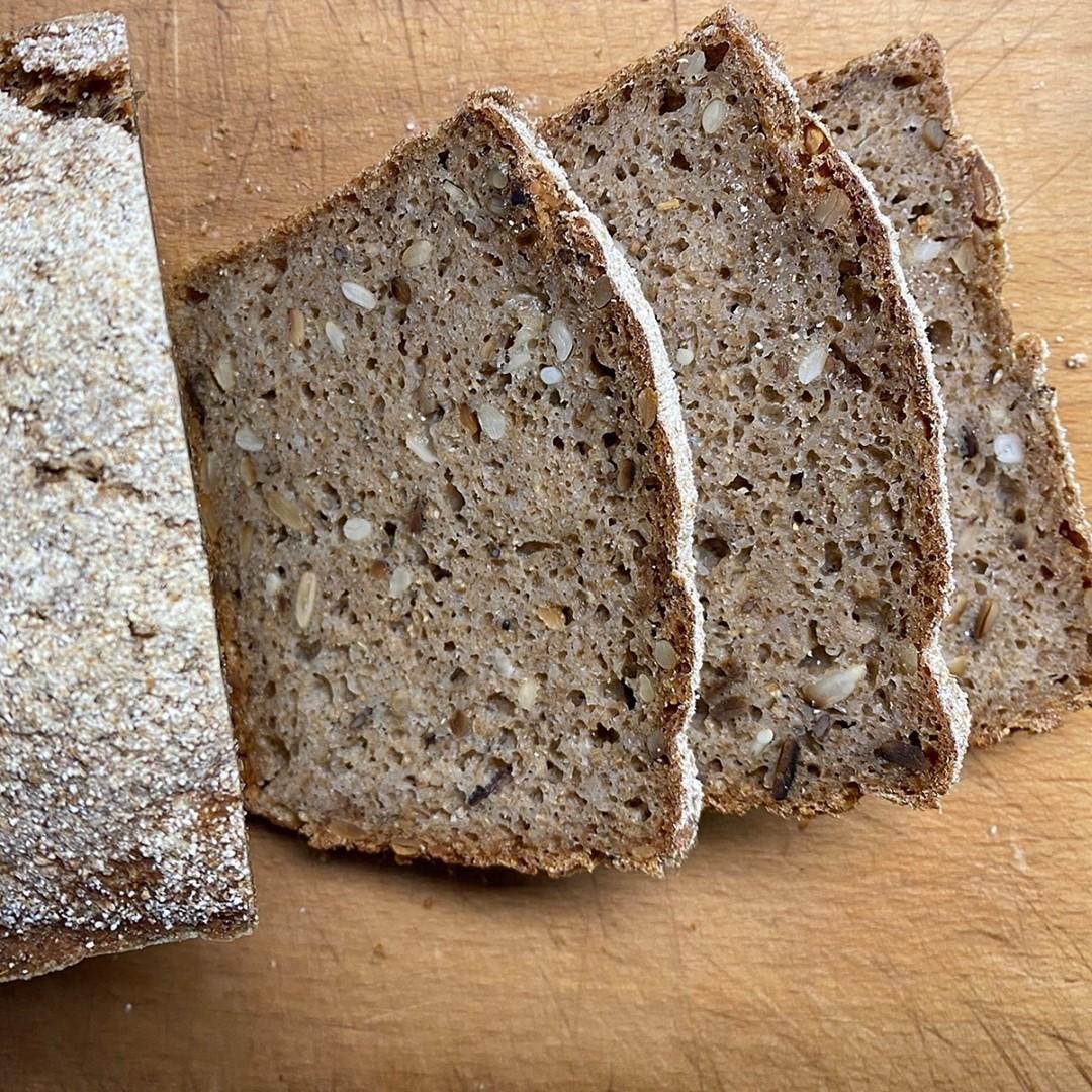 This is the 100% rye sourdough with a sunflower seed soaker from @raleighstreetbaker reduced to what is, for me, a more manageable quantity. Link to full recipe in bio.